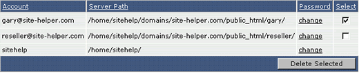 Om een account te verwijderen, vink de checkbox aan naast het account die u wenst te verwijderen en klikt u op "Delete Selected", zoals hier is voorgesteld: