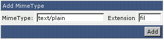 Mime types staan u toe om web files te installeren. Om een mime type toe te voegen, voert u de mime type naam en de uitbreiding in zonder punt. Mime types (en Apache handlers – zie volgende beschrijving) zouden alleen moeten worden gebruikt door ervaren gebruikers.