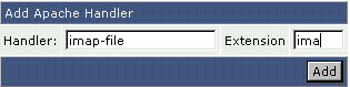 Handlers vertellen Apache (de web server software) wat te doen met bepaalde types van files. Bijvoorbeeld, .cgi en .pl scripts worden verwerkt met Perl. U kunt Apache process .scr files maken met Perl bij gebruik van de juiste handlers. Om een handler toe te voegen typt u eenvoudig de handler naam en de uitbreiding in (zonder punt) en klikt op “Add.”