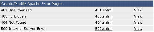Standaard zijn geen error pagina's. Dat betekent dat, 401.shtml, 403.shtml etc., niet bestaan. De "View" link naast elke file name staan u toe om te zien wat een bezoeker ziet wanneer zij dat type van fout tegenkomen.