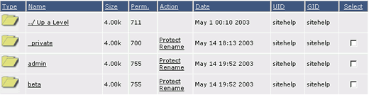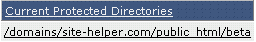 U zult een lijst zien van uw public_html directories. Om een directory met een wachtwoord te beveiligen klikt u op “Protect” naast de folder die u wilt beveiligen. In dit voorbeeld zullen wij op “beta” klikken.